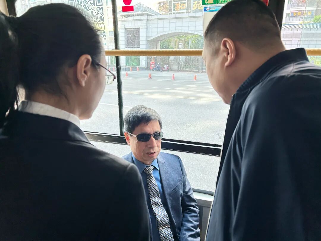 随后,由惠州市残联、检察院、交通局以及10名视障朋友组成的验收组,前往深业金榜山站开展实地验收及试用体验工作,对无障碍公交导乘系统进行现场体验测试。