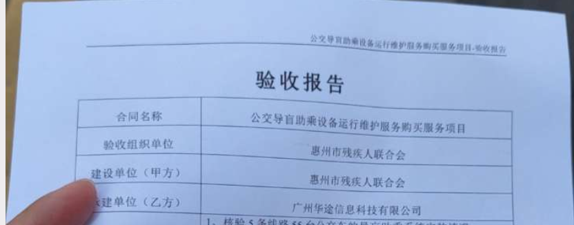 12月28日,惠州市残疾人联合会组织相关部门和人员对由广州华途信息科技有限公司承建的惠州无障碍公交导乘系统服务项目开展验收工作。