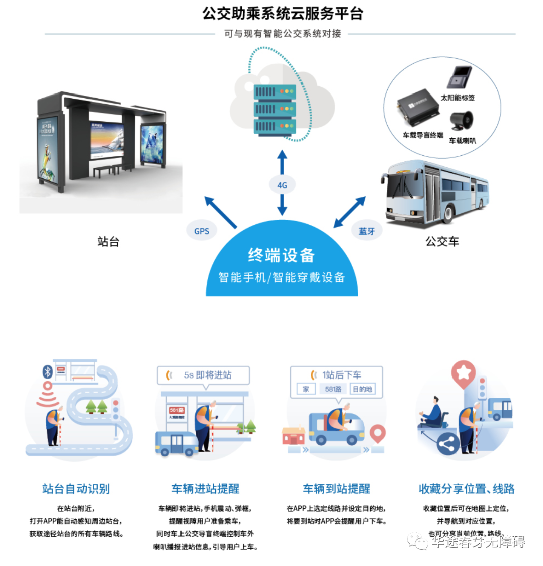 无障碍公交导乘系统是一套帮助视障人士、老年人等需求群体实现自主搭乘公交车出行的助乘设备,具有出行规划、站台自动识别,线路详情查看、站台候车、车辆进站提醒、车外喇叭播报、语音引导上车、到站提醒、线路收藏等多种功能。